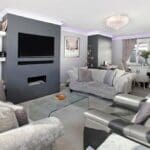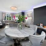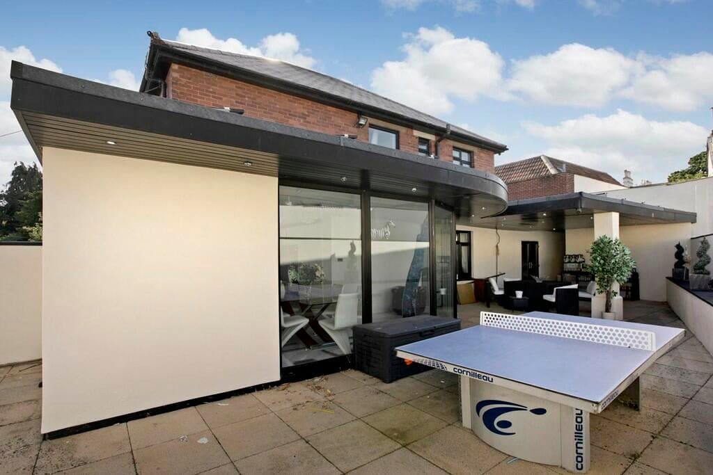 This property is beautifully presented, and modern throughout. The ground floor comprises a reception hall with ground-floor shower room, a dual-aspect sitting room with feature fireplace opening into a large games room, and an impressive kitchen/dining room with high-quality integrated appliances, island, snug area and full-height windows opening onto a canopied rear terrace. Upstairs are four good-sized bedrooms, including a master suite with private en-suite, alongside a family bathroom with freestanding bath. Outside, electronic gates lead to extensive parking, front lawn and a large garage, while the rear garden features a generous entertaining terrace and a swimming pool area with heated 12 x 6 metre pool, complemented by photovoltaic panels with Powerwall battery storage.