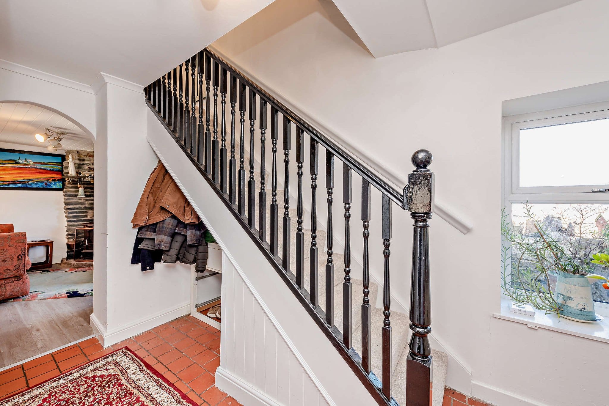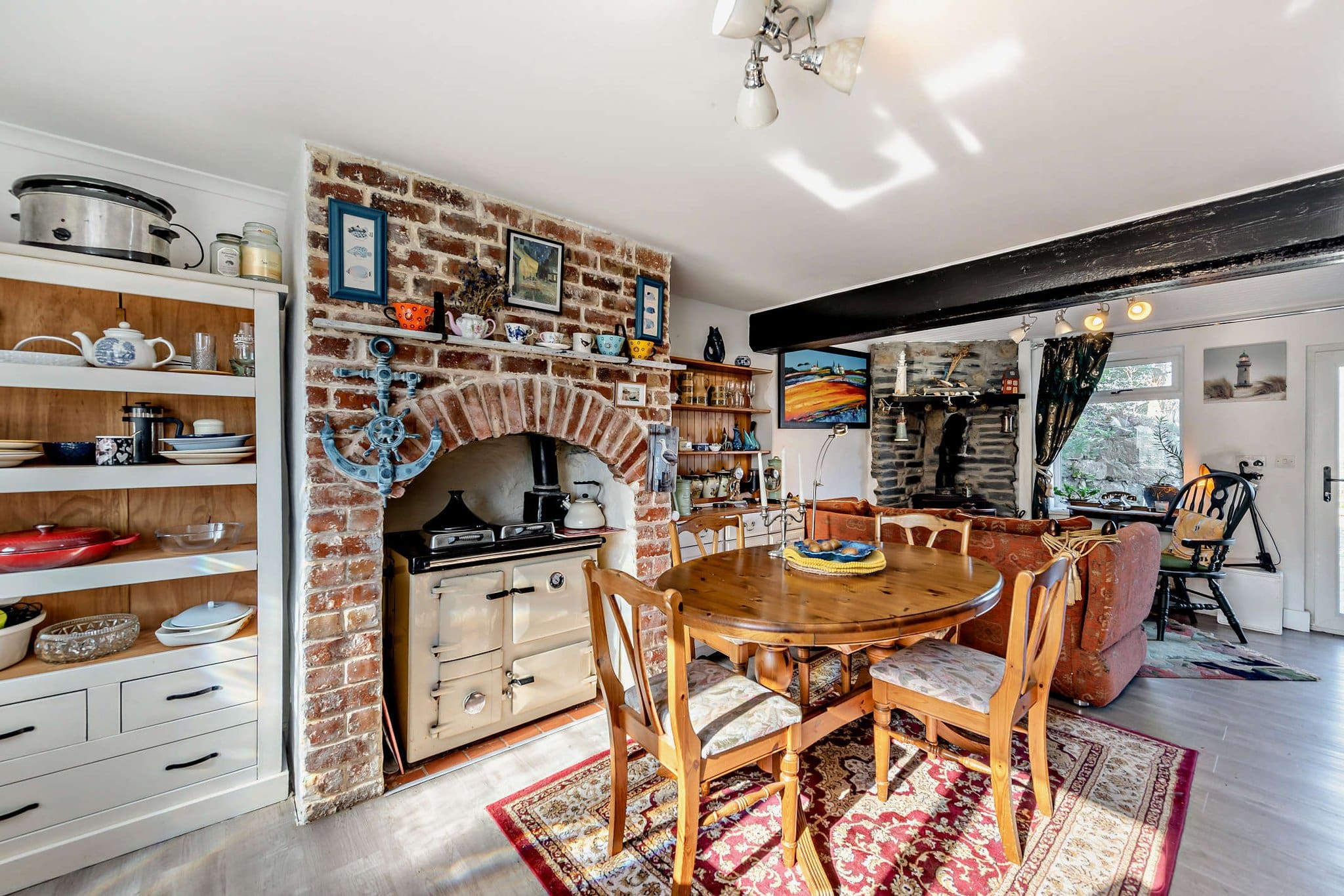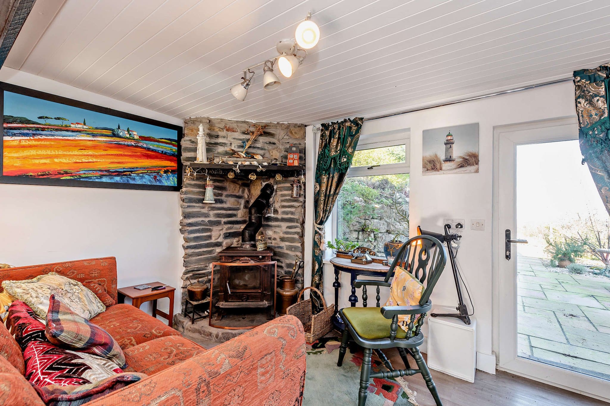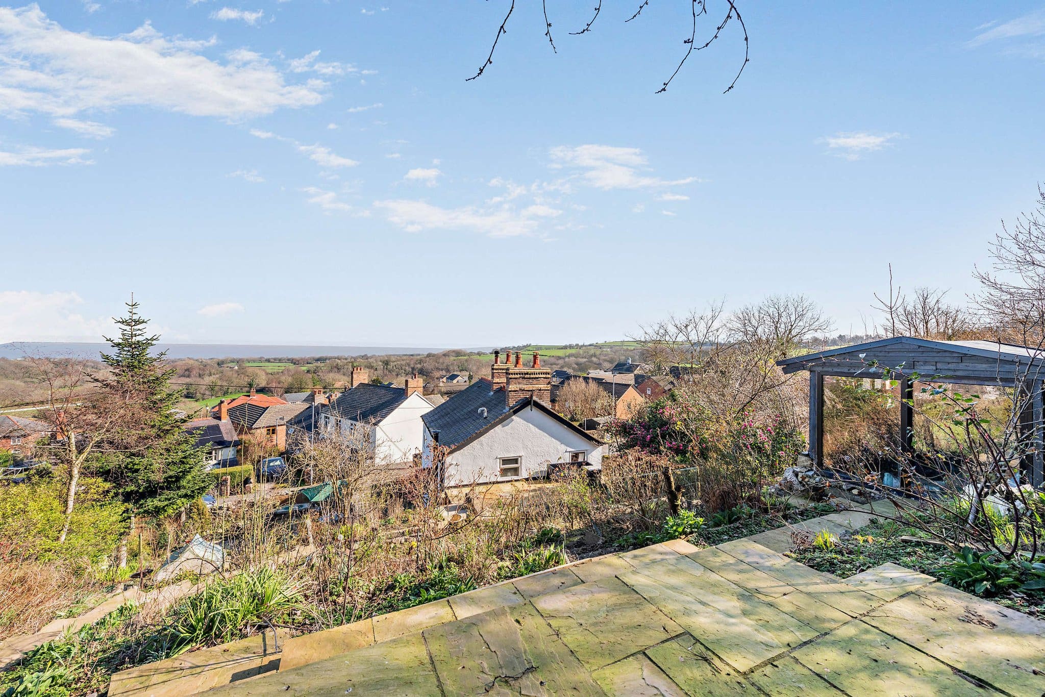 The interior of this charming character property comprises a stylish kitchen with fitted units, solid worktops and a traditional Aga, flowing into a spacious dining and sitting area with a log-burning stove and access to the garden. A further cosy lounge with exposed stonework and feature fireplace completes the ground-floor living accommodation. The first floor consists of three bedrooms, including two well-proportioned double bedrooms enjoying far-reaching views, alongside a beautifully appointed family bathroom featuring a freestanding bath and large walk-in shower. The exterior boasts a series of landscaped patio terraces, providing multiple seating and entertaining areas perfect for enjoying the summer months. The garden also includes a summer house and elevated viewpoints that make the most of the impressive surrounding views.