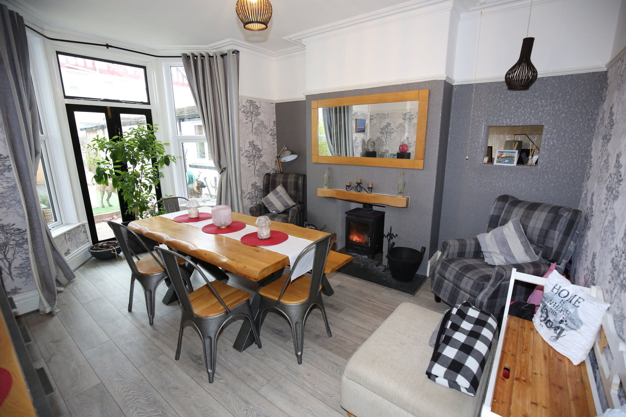 The interior of this beautifully presented property comprises a spacious living room with a log burner and bay window, elegant dining room with its own log burner and French doors to the garden, a breakfast room flowing into a modern fitted galley kitchen with integrated appliances, and a well-appointed bathroom on the ground floor. The first floor consists of four generous double bedrooms, a stylish family bathroom, while the second floor offers three further bedrooms with useful eaves storage. The exterior boasts low-maintenance front and rear gardens, ideal for relaxing and entertaining, with the rear garden featuring a fully powered log cabin providing office space and storage, along with an additional workshop/shed.