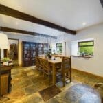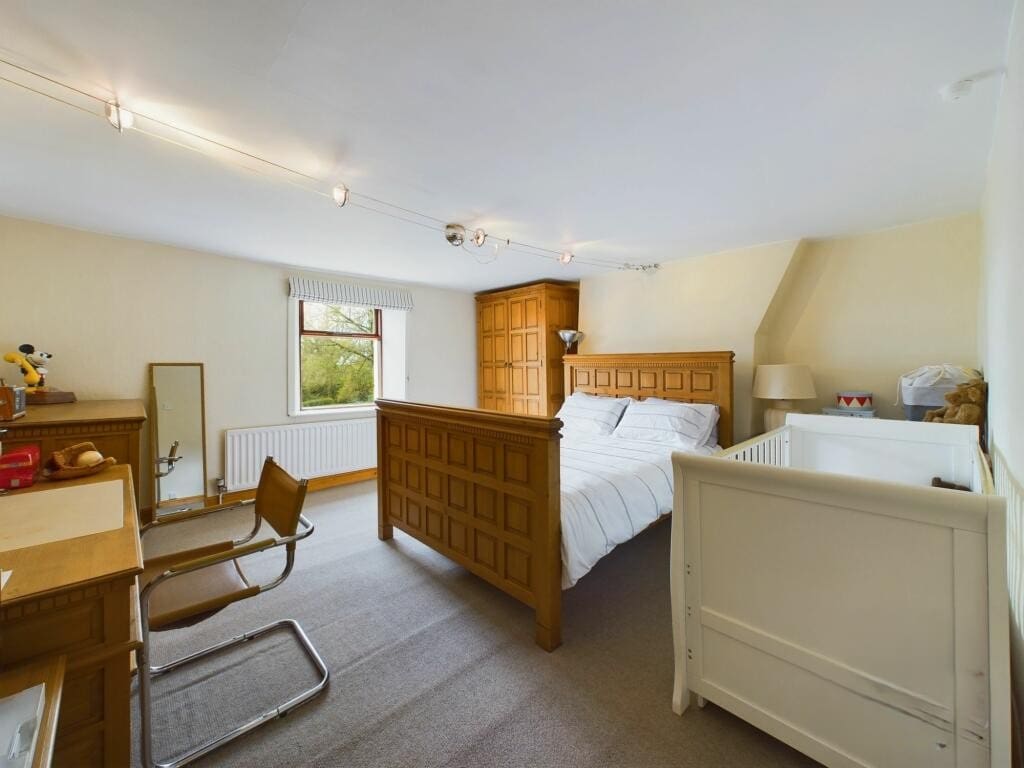 The interior of this beautifully presented and substantial period farmhouse comprises two generous reception rooms with beamed ceilings and feature fireplaces, a flexible dining room, and a bespoke fitted dining kitchen, along with a useful boot room and utility room on the ground floor. The first floor consists of five well-proportioned double bedrooms, including a characterful principal bedroom with vaulted ceiling, a luxurious family bathroom, and an additional en-suite shower room, with further scope for a self-contained annexe or home office. The exterior boasts extensive private gardens with patio seating areas, mature planting, stone outbuildings, ample gated parking, and an adjoining half-acre garden with open rural views and outline planning permission for a detached single-storey annexe, making it perfect for both family living and enjoying the summer months.