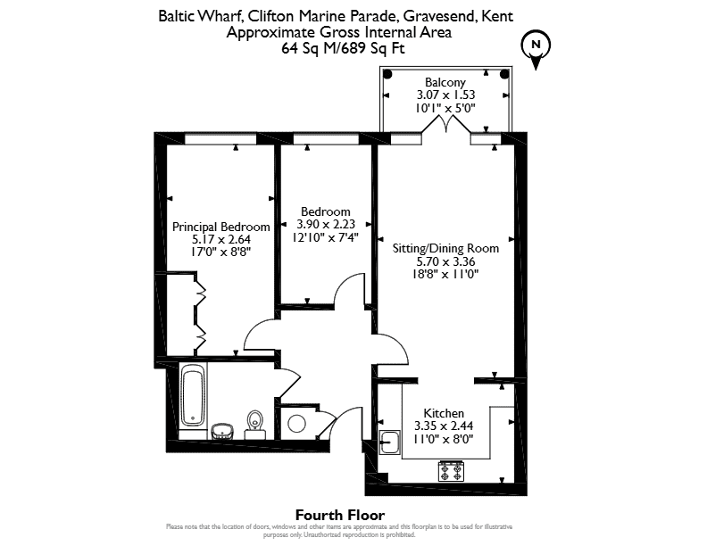 The interior of this beautifully presented, fourth floor property comprises a spacious, open-plan living/dining room, fitted kitchen, two double bedrooms, and a family bathroom. The property also benefits from a private balcony, perfect for enjoying the summer months.