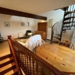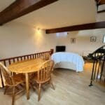 The interior of this property comprises 2 bedrooms and bathroom on the ground floor. The first floor holds the living room and fitted kitchen. There is also a mezzanine on the second floor which could be used for storage or a further bedroom.