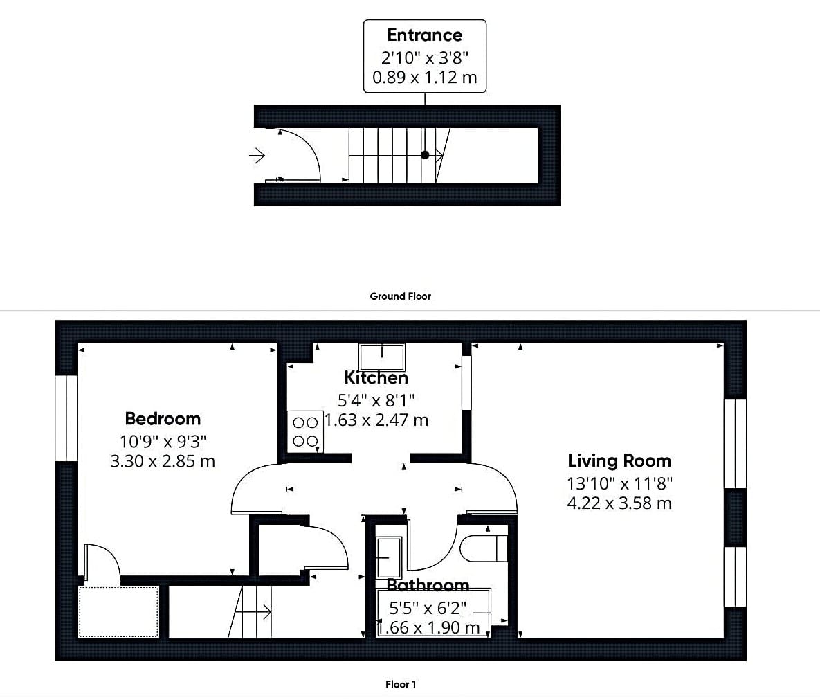The interior of this beautifully presented, top floor property comprises a spacious living room, fitted kitchen, one double bedroom, and a family bathroom.