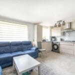 The interior of this beautifully presented, ground floor property, which has newly installed flooring, doors and radiators, and comprises a spacious, open plan living/kitchen area, one double bedroom and the family bathroom.
