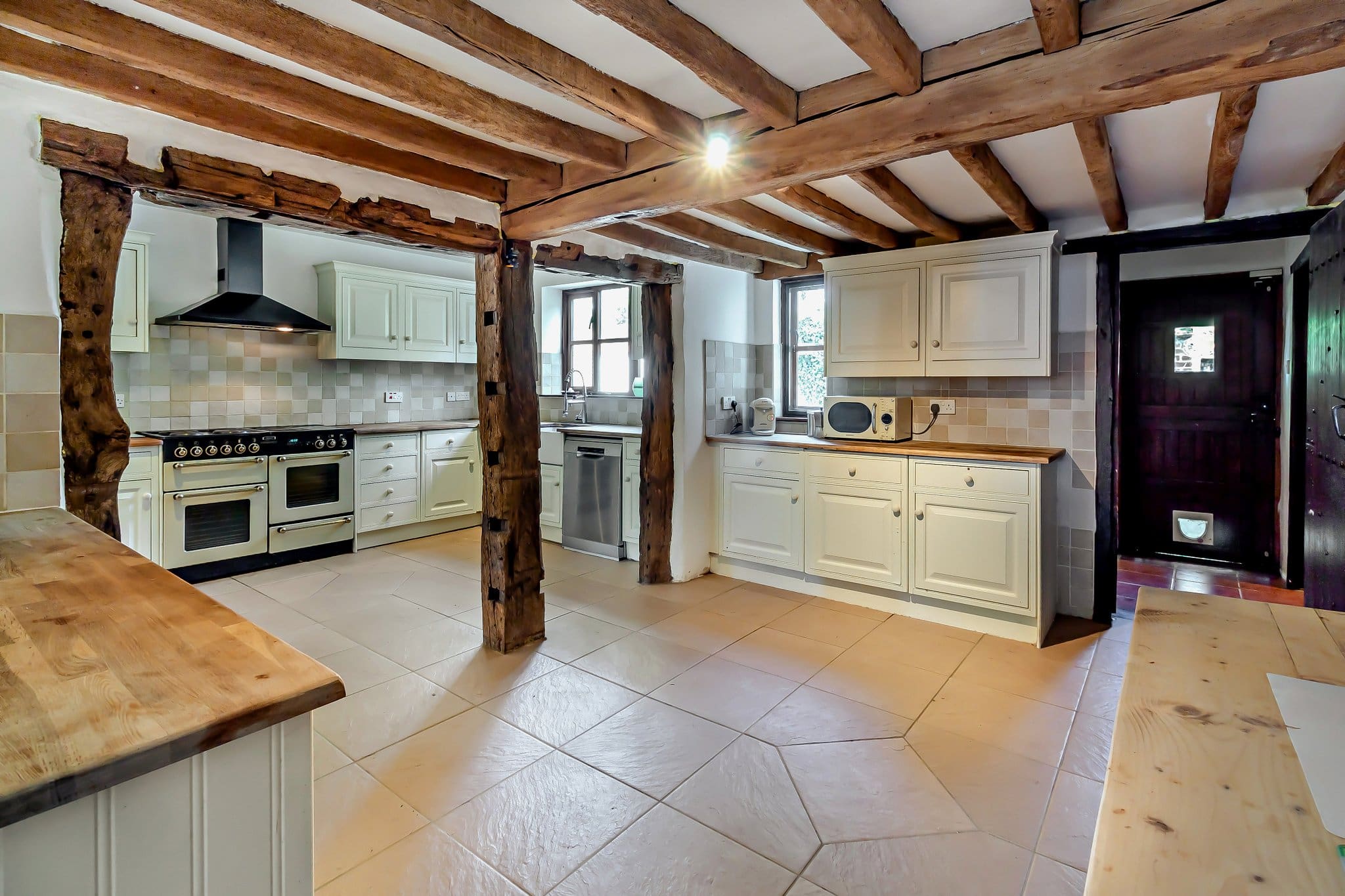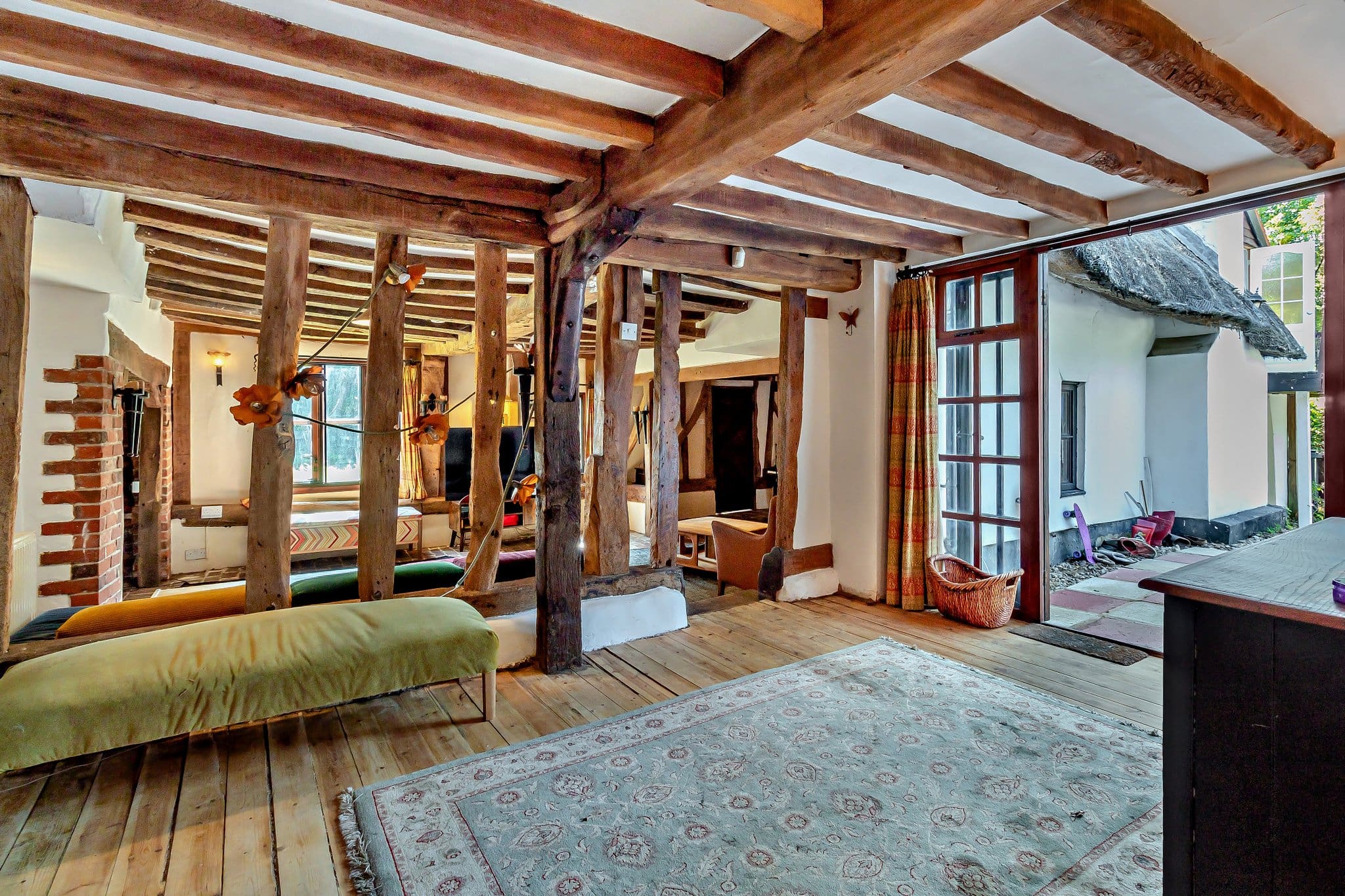 The interior of this beautifully presented, rustic cottage, with exposed beams throughout, comprises a spacious living room, study, dining room, fitted kitchen/breakfast room, utility room, WC and fifth bedroom/family room on the ground floor. The first floor consists of four bedrooms, two dressing rooms and the family bathroom. The second bedroom also has access to a private balcony. The property also comes with a separate annexe, which is in need of some work, with a kitchen/lounge/dining area, two bedrooms and a shower room. The exterior boasts a car port, garage and outbuilding, as well as a large, private rear garden, perfect for enjoying the summer months.