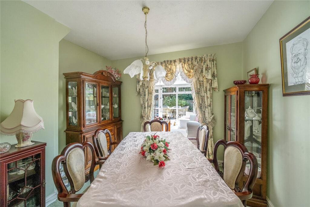 The interior of this spacious family home comprises a spacious lounge with feature fireplace, dining room, fitted kitchen/breakfast room with attached utility room on the ground floor. The accommodation also includes a ground-floor shower room and two bedrooms. The first floor consists of two further bedrooms, study and an additional shower room. The exterior boasts a generous rear garden with attractive views, lawn, two patio areas, storage shed, and hottub, perfect for enjoying the summer months.