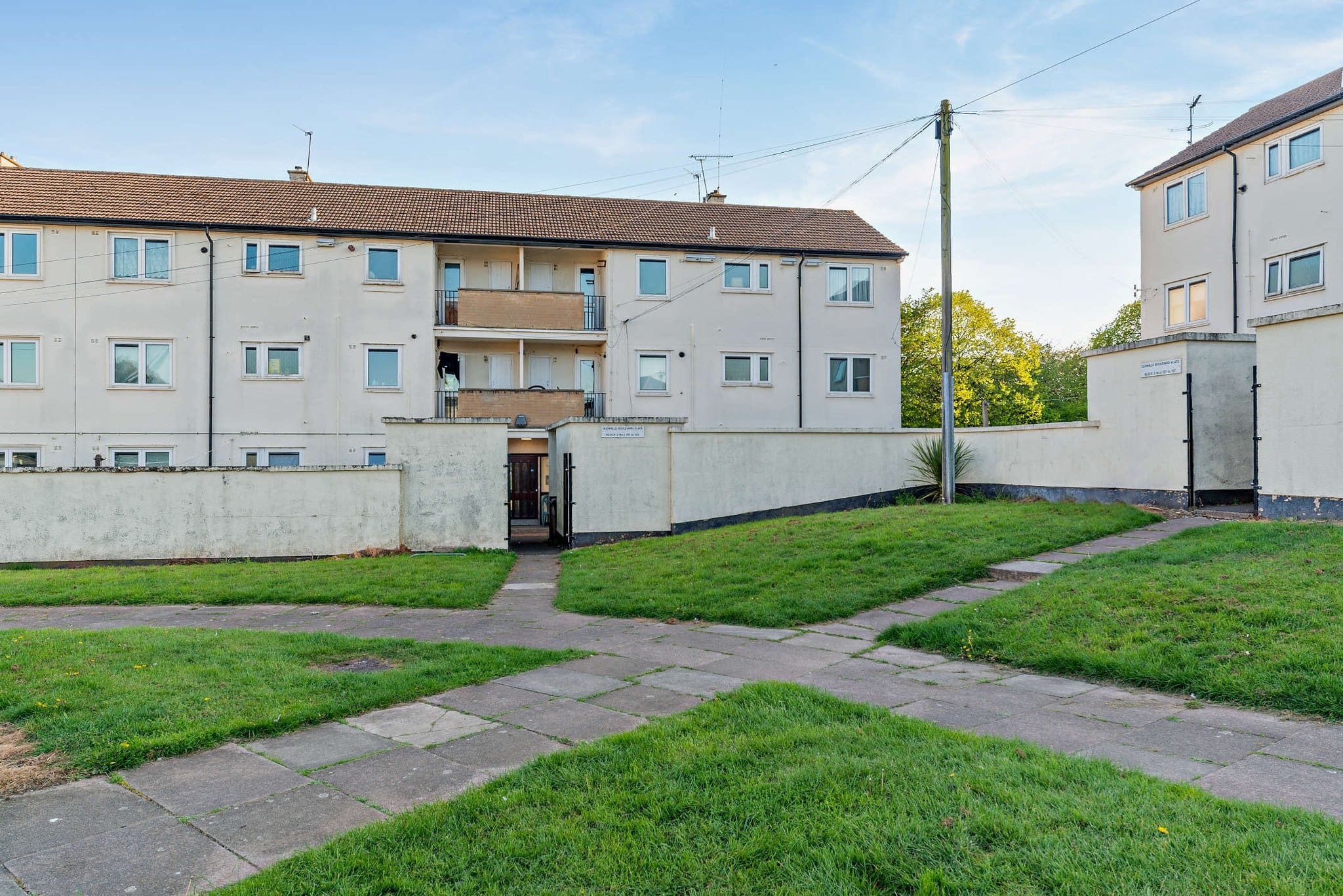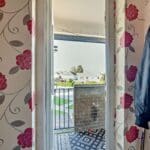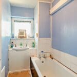 The interior of this top floor property, which requires modernisation throughout, comprises a spacious living room, fitted kitchen, two double bedrooms, and a family bathroom, with separate WC. The property further benefits from a private balcony, perfect for enjoying the summer months.
