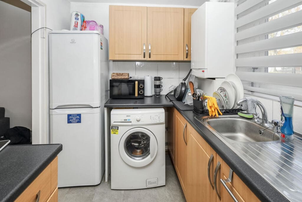 The interior of this well presented property comprises a spacious living and dining area and fitted kitchen, as well as the 1 bedroom and the family bathroom.