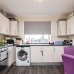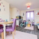 The interior of this well presented, top floor property comprises a spacious, open-plan living/dining/kitchen area, two double bedrooms, and a family bathroom.