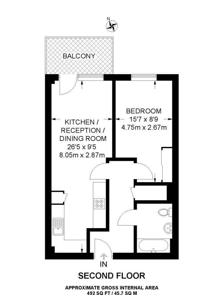 The interior of this beautifully presented, second floor property comprises a spacious, open-plan living/dining/kitchen area, one double bedroom, and the family bathroom. The exterior boasts a private balcony, perfect for enjoying the summer months.