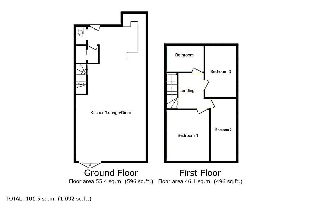 The interior of this beautifully presented property comprises a spacious, open-plan kitchen/living/dining area, and WC on the ground floor. The first floor consists of three bedrooms, alongside a modern family bathroom. Outside, the property boasts a garden shed, ideal for additional storage, and a private rear garden, perfect for enjoying the summer months.