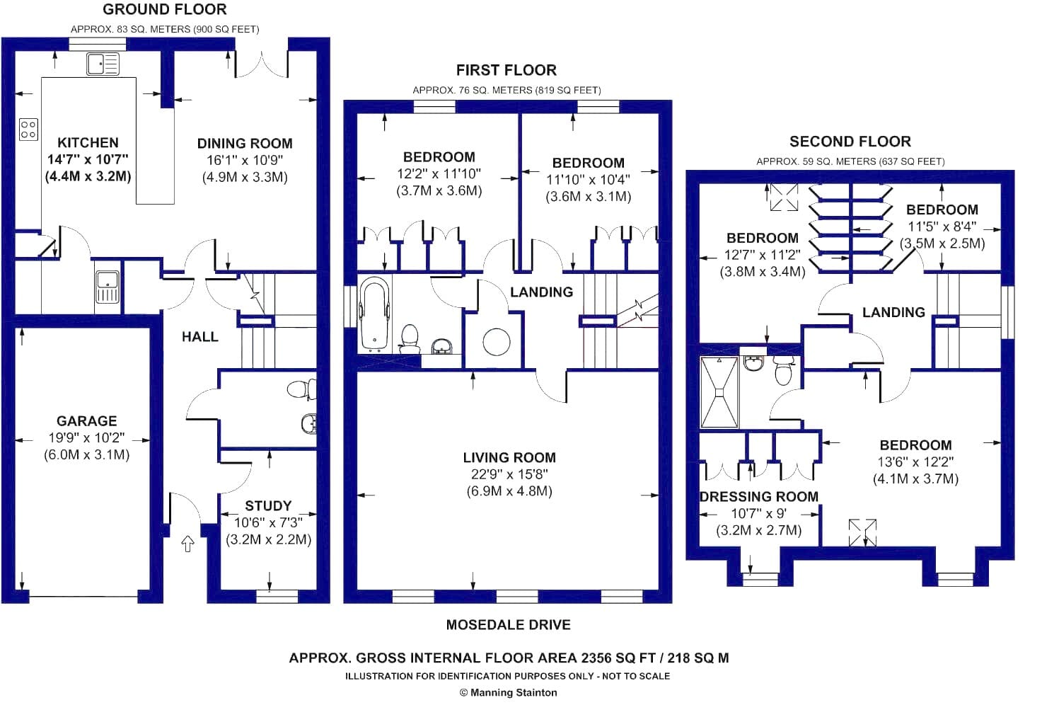 The interior of this beautifully presented property comprises a spacious study, dining room, downstairs WC and fitted kitchen on the ground floor. The first floor consists of 2 bedrooms, the living room and the family bathroom. The second floor comprises the 3 bedrooms  including the dressing room and a WC. The exterior boasts a private rear garden, perfect for enjoying the summer months.