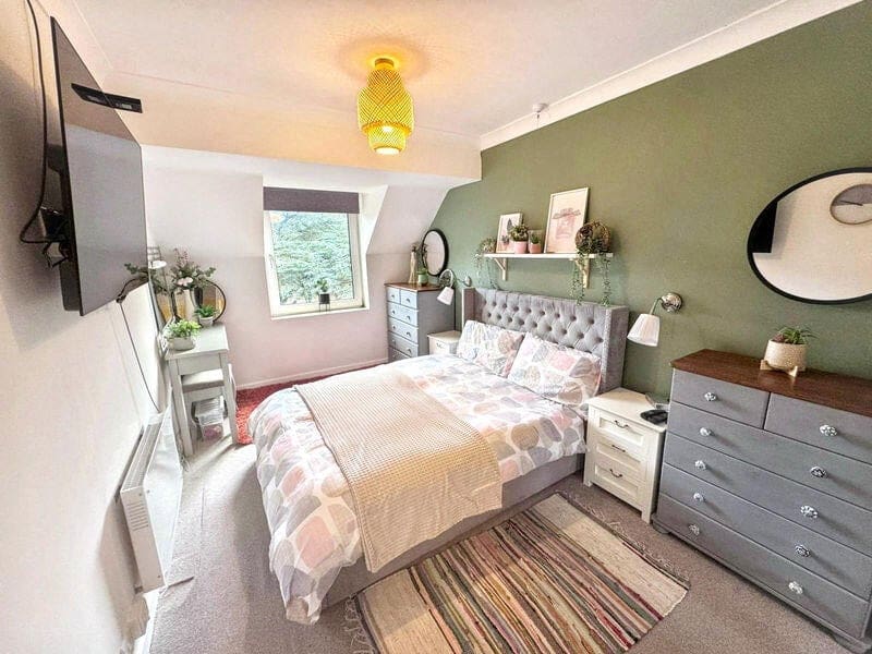 The property benefits from double glazing, electric heating throughout and has off street parking available via the car park.