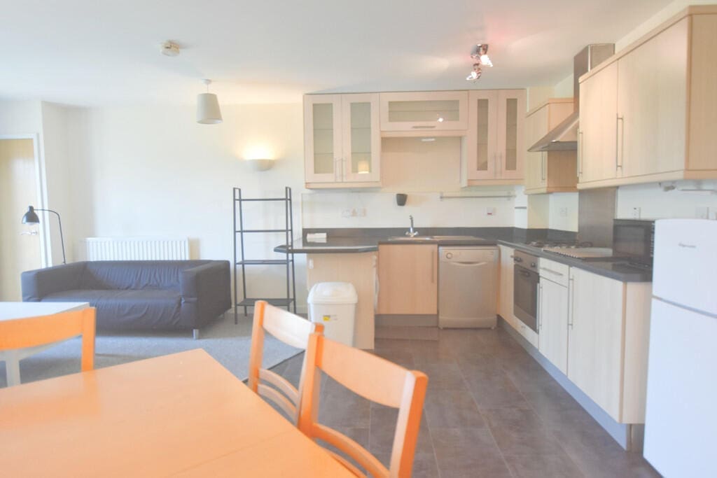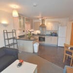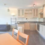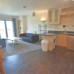 The interior of this beautifully presented, second floor property comprises a spacious, open plan living/kitchen area, two double bedrooms and a family bathroom.