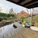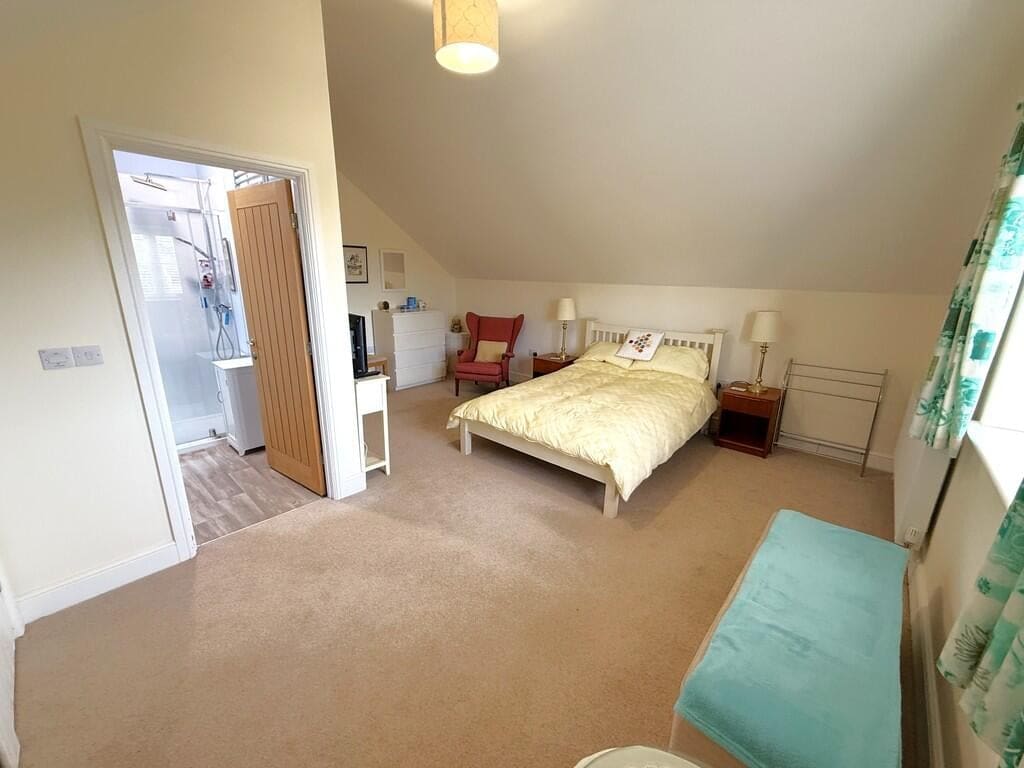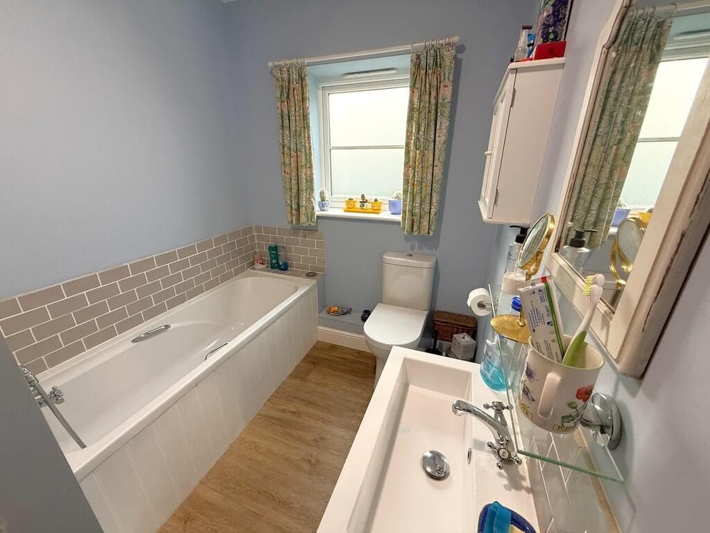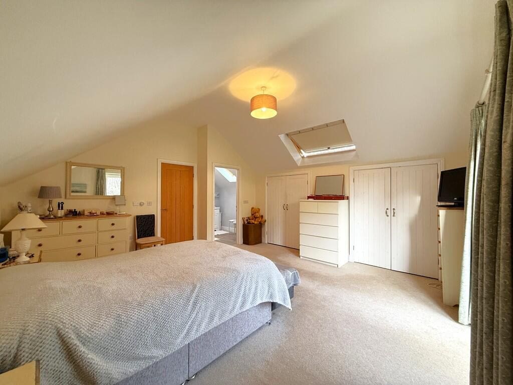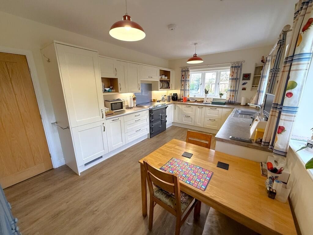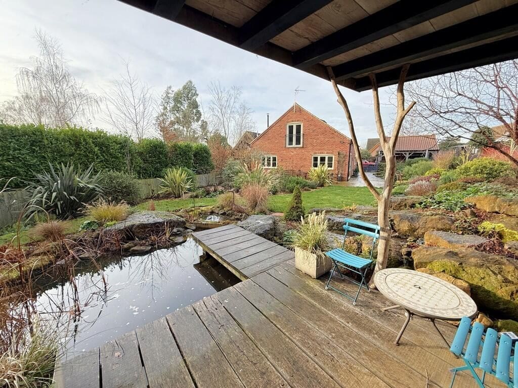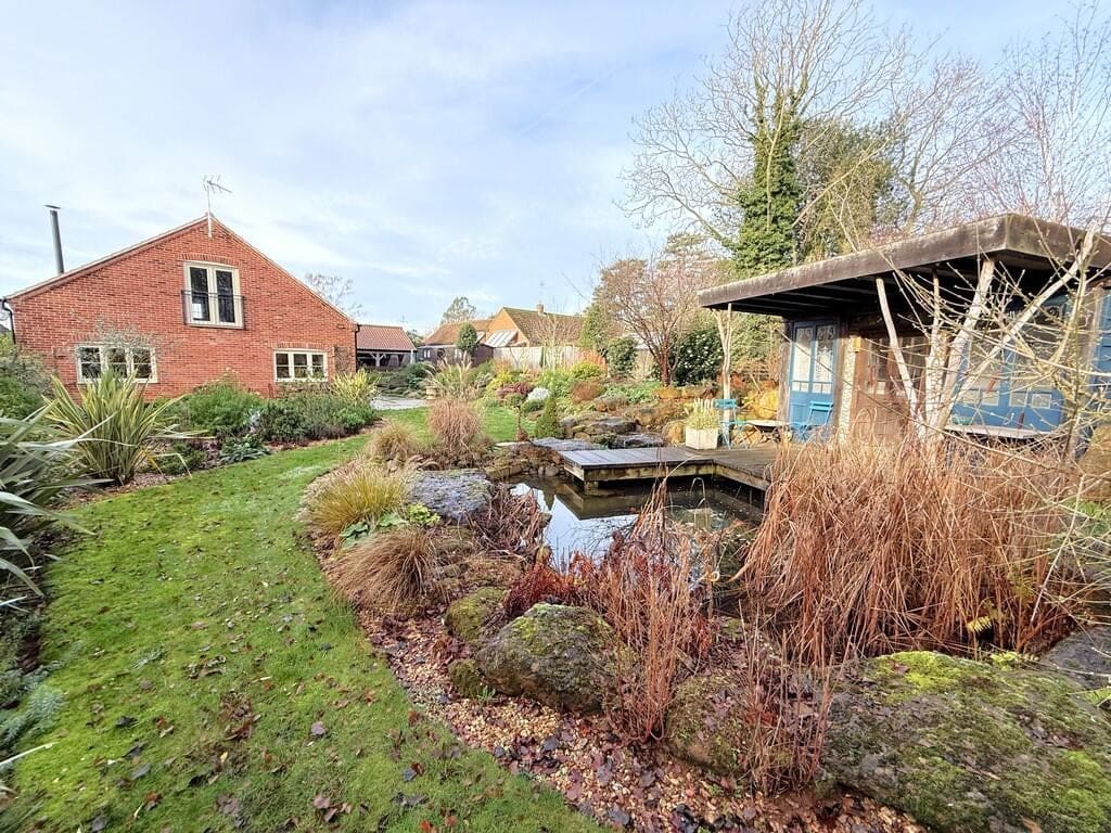The interior of this modern home comprises a welcoming entrance hall, a spacious lounge/dining room, a contemporary kitchen/breakfast room and a utility room on the ground floor. The ground floor also benefits from a bedroom and bathroom. The first floor consists of two double bedrooms, both benefiting from en-suite facilities. The exterior boasts beautifully established landscaped gardens with a feature pond and summerhouse, perfect for enjoying the summer months, along with a useful timber outbuilding providing a studio and workshop space.