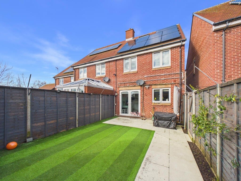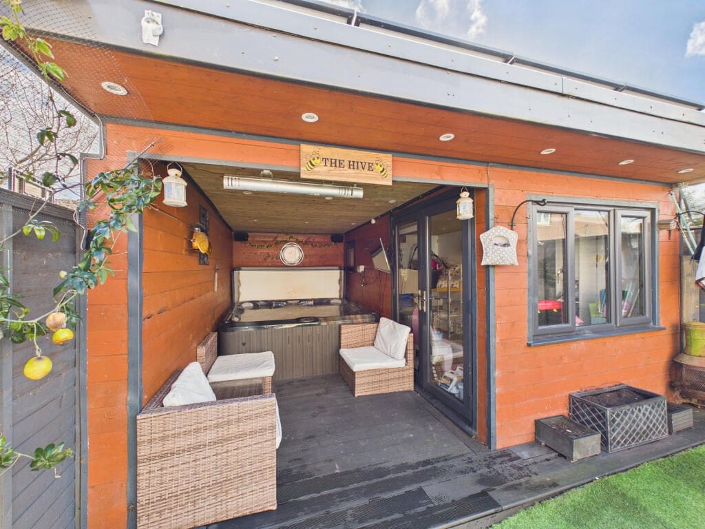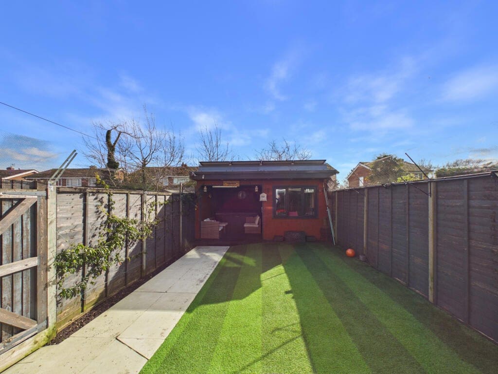The interior of this beautifully presented property comprises a modern kitchen/dining room, spacious living room featuring a media wall and contemporary fireplace, and a WC on the ground floor. The first floor consists of three well-proportioned bedrooms, including one with en-suite, alongside a family bathroom. The upper floor provides two further generously sized bedrooms with useful eaves storage. Externally, the property boasts a private rear garden, perfect for enjoying the summer months, featuring a patio area and an impressive garden cabin.