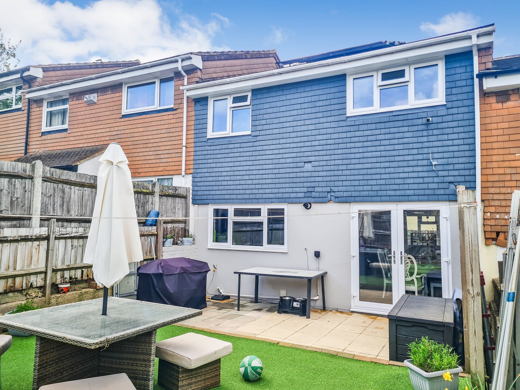 The interior of this beautifully presented property comprises a spacious, open-plan living/dining area, fitted kitchen, with additional pantry, and WC on the ground floor. The first floor consists of three double bedrooms, alongside a shower room. Outside, the property boasts a private rear garden, with both patio and artificial lawn areas, perfect for enjoying the summer months.