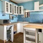 The interior of this property requires redecoration throughout and comprises a fitted kitchen with utility room, WC and spacious living room on the ground floor. The first floor consists of two bedrooms and a family bathroom. The exterior boasts a double garage and workshop, with potential to be converted to a studio apartment, summer house, which requires some work, and a private rear garden, perfect for enjoying the summer months.