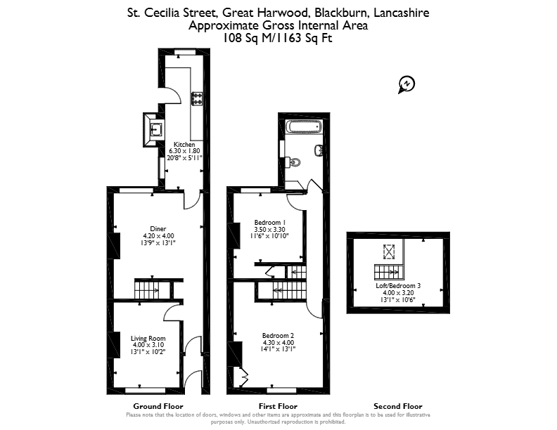 The interior of this well presented property comprises a spacious living room, dining room and fitted kitchen on the ground floor. The first floor consists of two double bedrooms and the family bathroom, with a third bedroom located in the loft room. The exterior boasts a rear, low maintenance yard, perfect for enjoying the summer months.