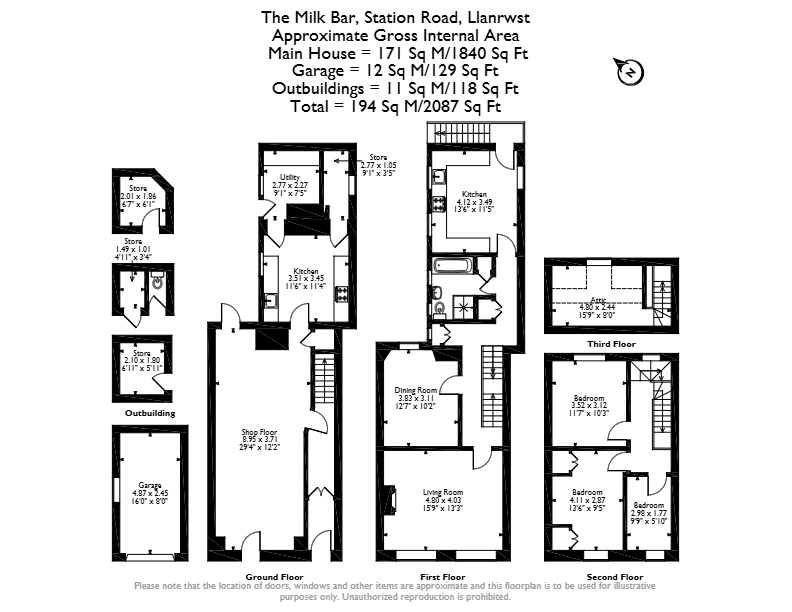 The interior is made up of a commercial property, and a residential property. The ground floor comprises the shop floor, currently trading as a pet store, alongside a fitted kitchen and utility room. The first floor houses the residential property, which consists of a spacious living room, dining room, fitted kitchen, and family bathroom, with the three bedrooms located on the second floor. An additional attic space is located on the third floor. Outside, the property boasts a garage, and three outbuildings, all used as additional store rooms, alongside a private rear yard, perfect for enjoying the summer months.