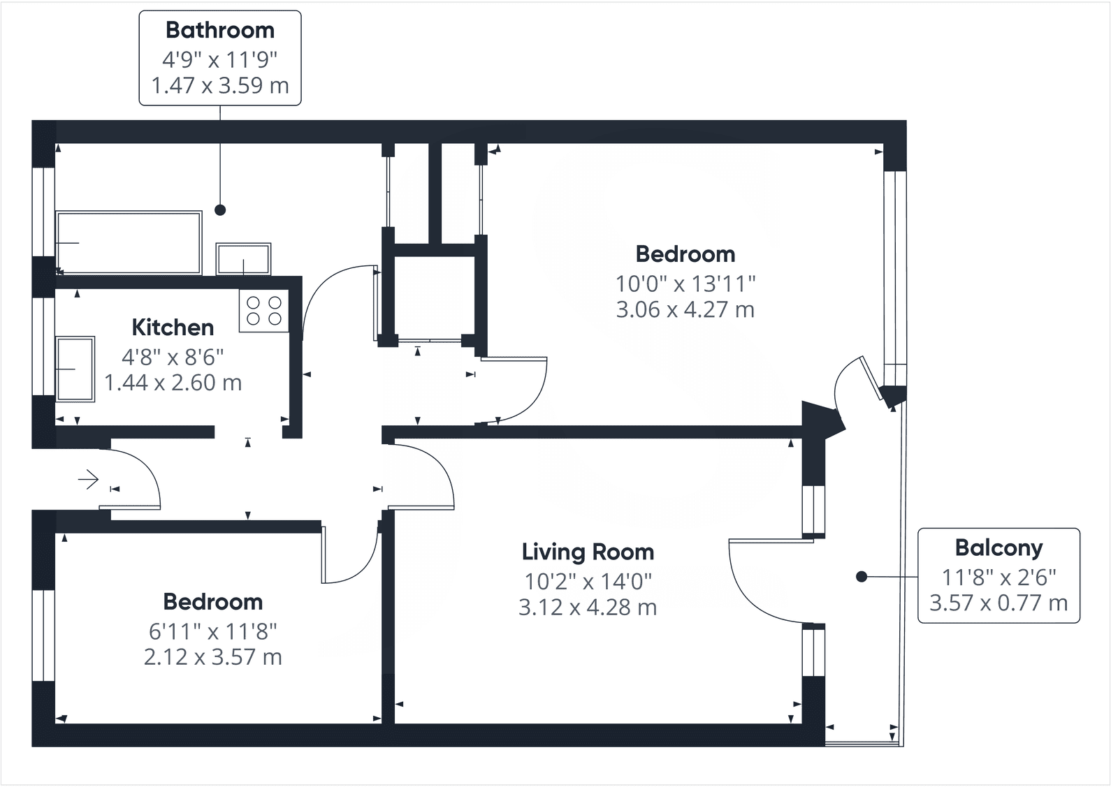 - 2 Bedrooms