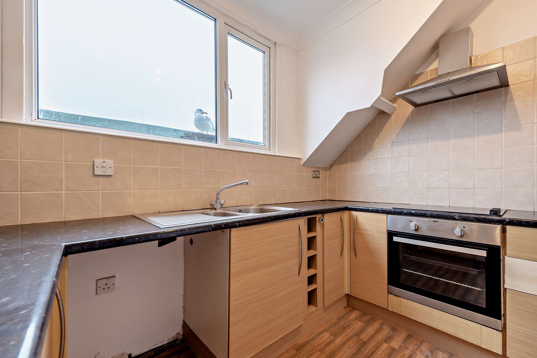The interior of this beautifully presented property comprises a spacious living room, fitted kitchen, one double bedroom, and a family bathroom. The property also benefits from views of the sea, and over the town.