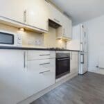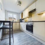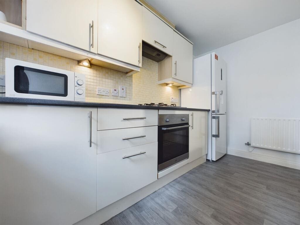 The interior of this beautifully presented, ground floor property, comprises a spacious living room, fitted kitchen, two double bedrooms, and the family bathroom.