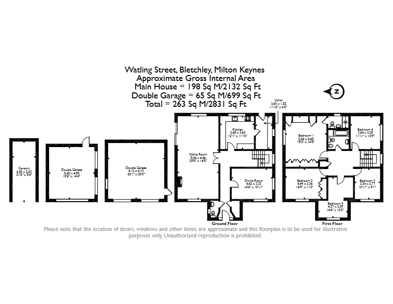 The interior of this well presented property, which may require some modernisation throughout. comprises a spacious living room, dining room, fitted kitchen, and WC on the ground floor. The first floor consists of five bedrooms, with the master bedroom benefitting from a private en-suite, alongside the family bathroom. The exterior boasts an additional garage, and a private rear garden, mainly laid to lawn, perfect for enjoying the summer months.