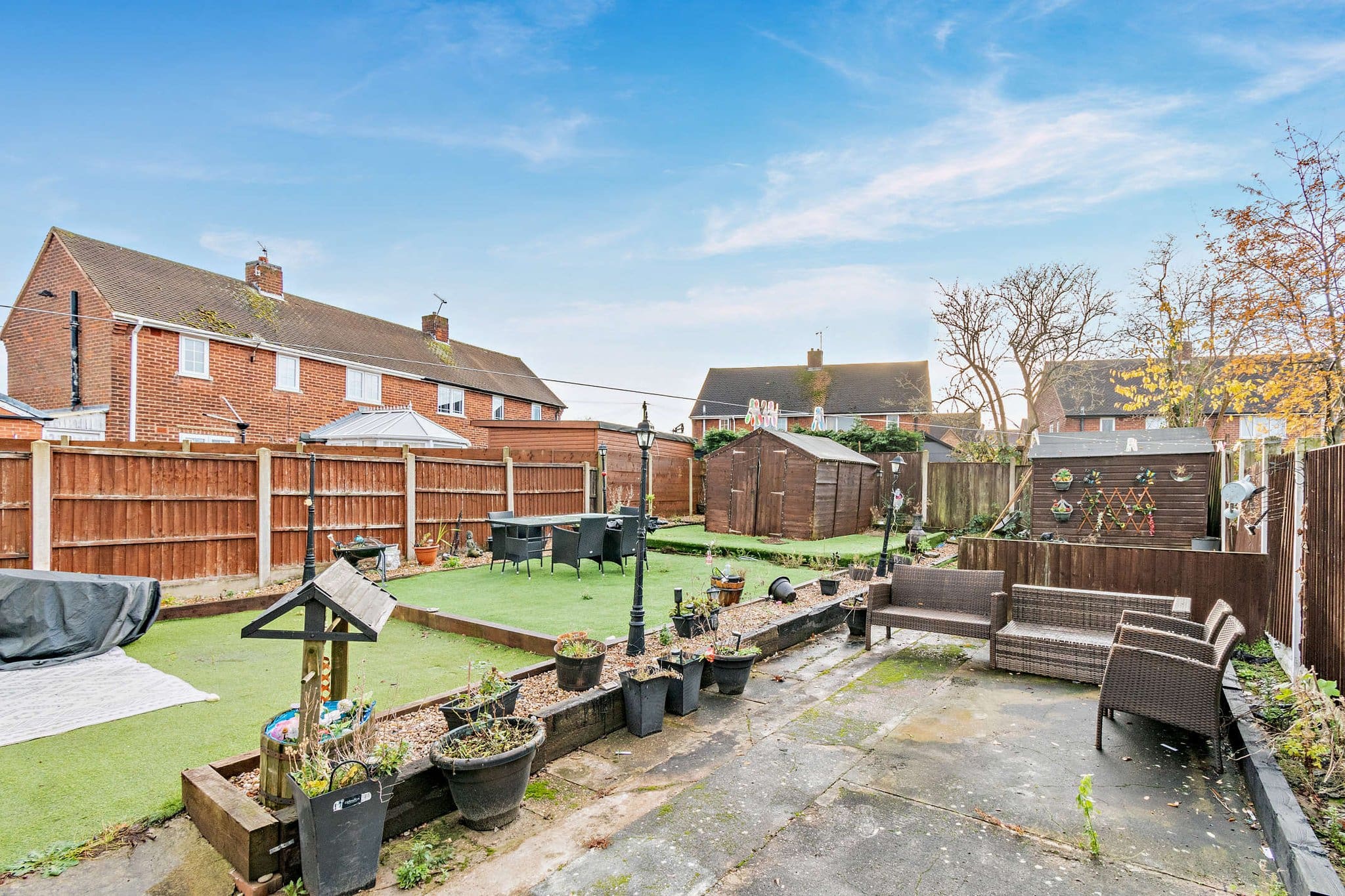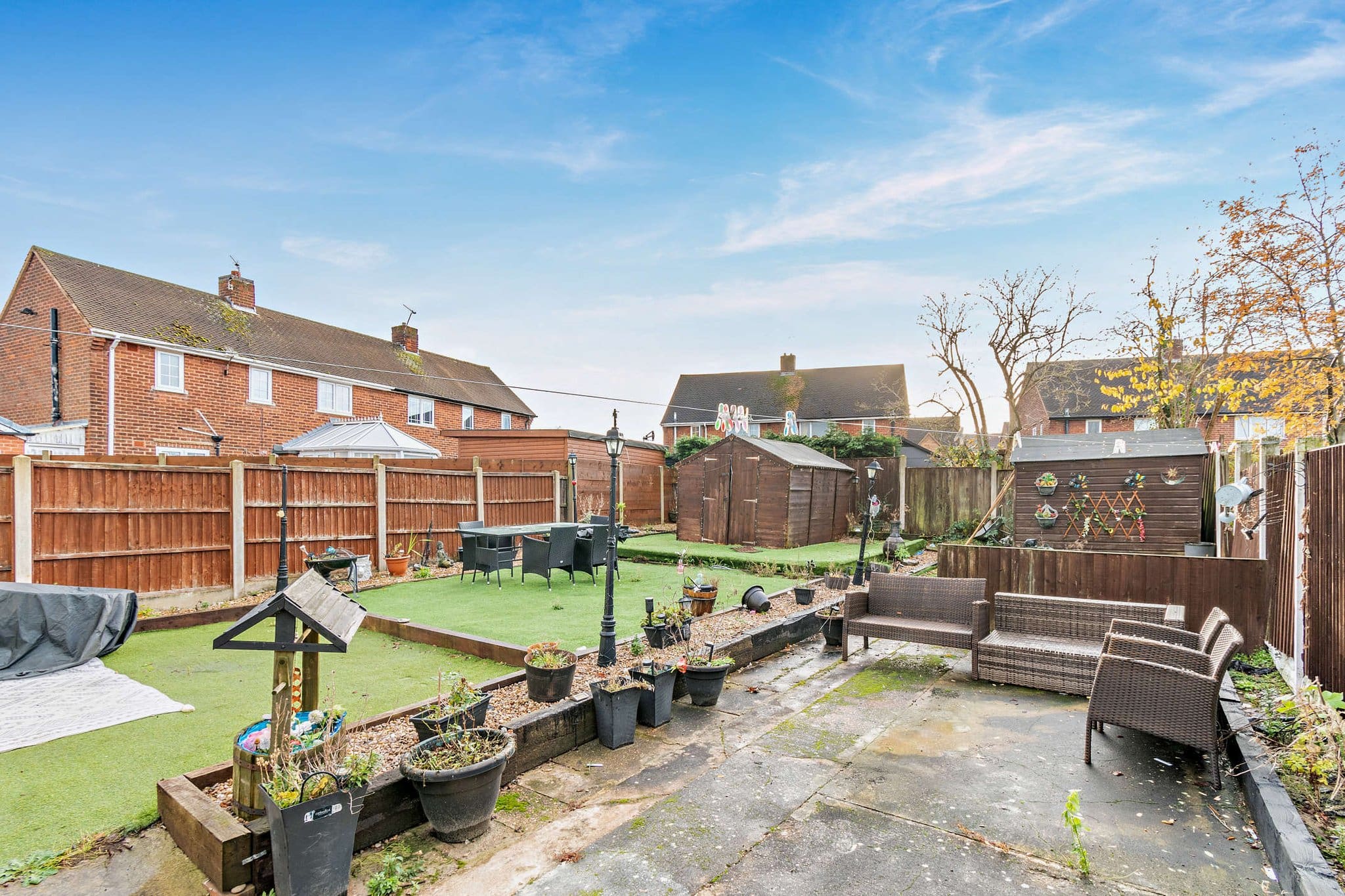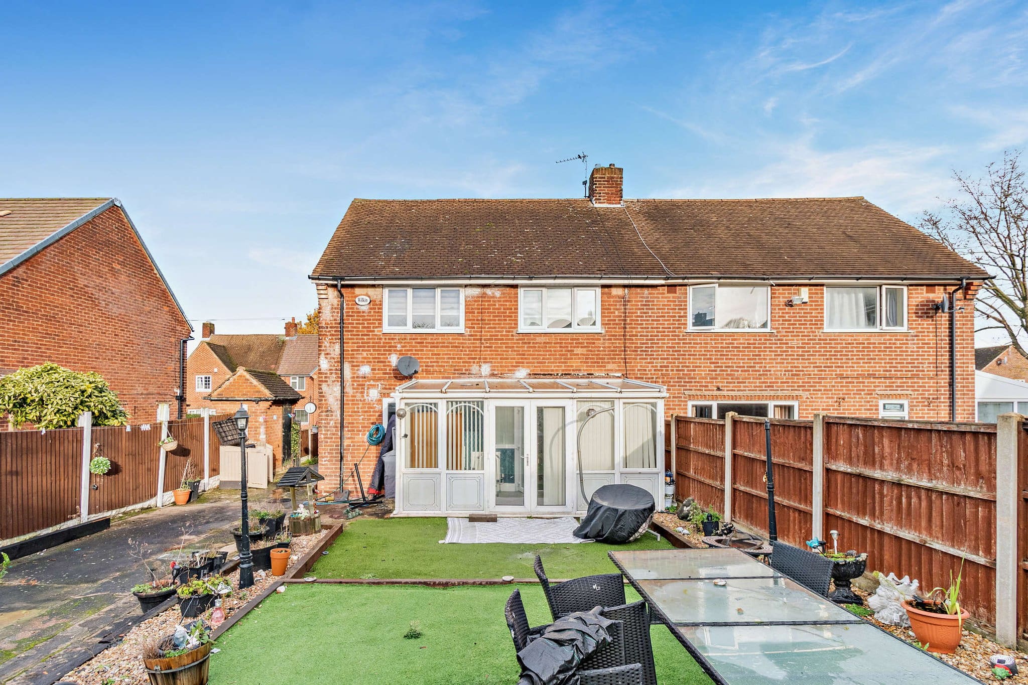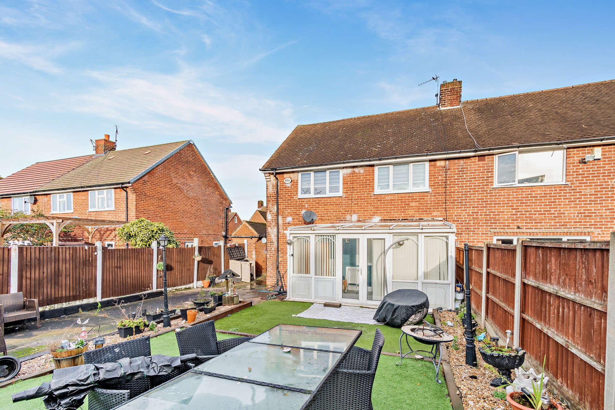 The interior of this beautifully presented property comprises a spacious living/dining area, fitted kitchen, conservatory and shower room on the ground floor. The first floor consists of three double bedrooms, and a family bathroom. Outside, the property boasts a private rear garden, with two wooden storage sheds, and a private rear garden, with artificial lawn, and patio areas, perfect for enjoying the summer months.