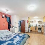 The interior of this beautifully presented ground floor property comprises a spacious open-plan living/bedroom/kitchen area, with a separate bathroom.